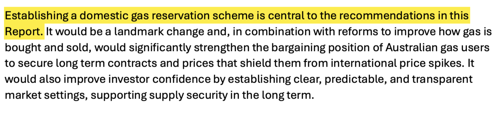The basis for this approach was contained in both the joint ministerial release and the Gas Market Review report. ‘Existing contracts would be respected – both domestic and international contracts.
